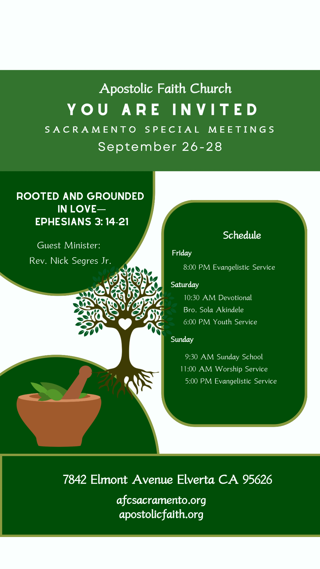 Sacramento, CA Special (Revival) Meeting Happy Labor Day to you all! Please pray for the outpouring of abundant spiritual and material blessings at the Sacramento, CA Special (Revival) Meeting – September 26 – 28, 2025, where our own pastor, Rev. Nathaniel Segres, Jr. will be the guest speaker. We’d love for anyone who is able to join our pastor and his […]